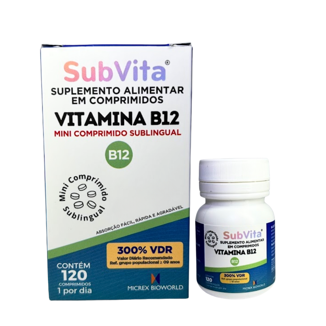 Subvita B12 é um suplemento alimentar na forma de mini comprimido à base da vitamina B12 (cobalamina). A vitamina B12 participa do processo de divisão celular, na formação de células vermelhas do sangue e no funcionamento do sistema imune.